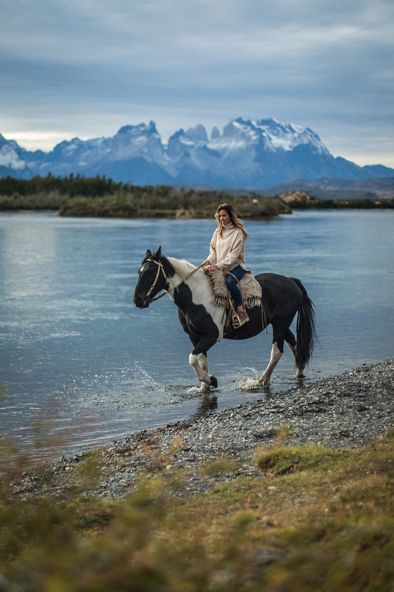 Patagonia, tierra de gauchos, con quienes recorremos el sector de Villa Serrano, en una cabalgata de 1,5 a 2 hrs. Comenzamos en las pesebreras del rio serrano hotel + spa. En la primera parte, nos internamos en un antiquísimo bosque magallánico, rodeado de árboles de la especie Nothofagus y arbustos endémicos como el Calafate. Tendremos la opción de avistar distintas especies de aves. Cruzamos una pequeña laguna sobre nuestros caballos y enfilamos rumbo hacia el Río Serrano. Al llegar al Río Serrano podremos detenernos a tomar algunas fotografías para el recuerdo, con el imponente Macizo Paine de fondo.